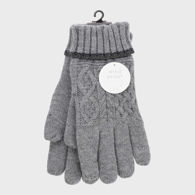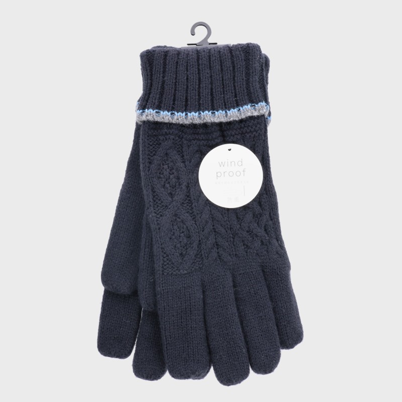 紳士手袋 ニット 裏ボア 防風『袖口折り返しライン』