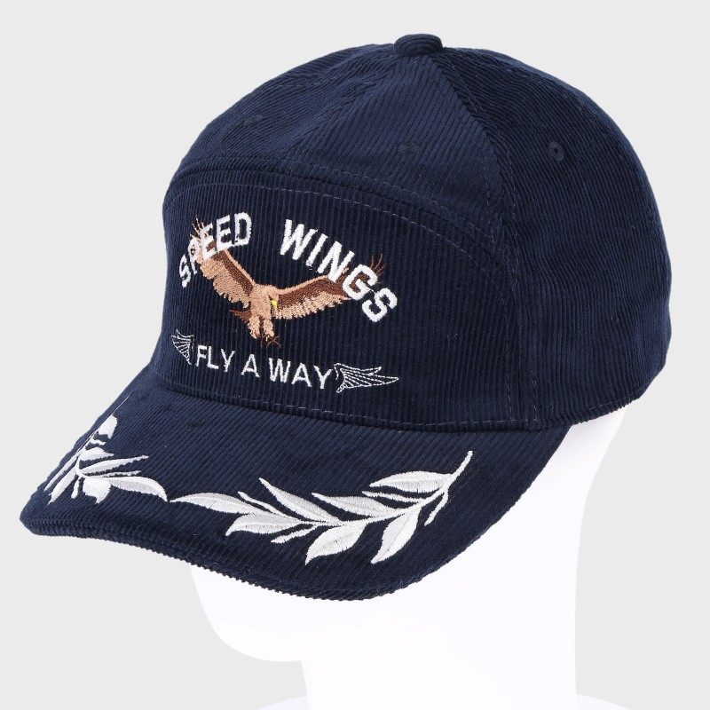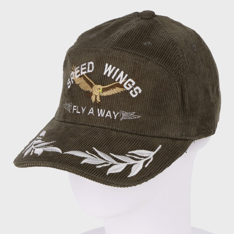 『SPEED WINGS』つばリーフ刺しゅう入りワイドキャップ(コーデュロイ)
