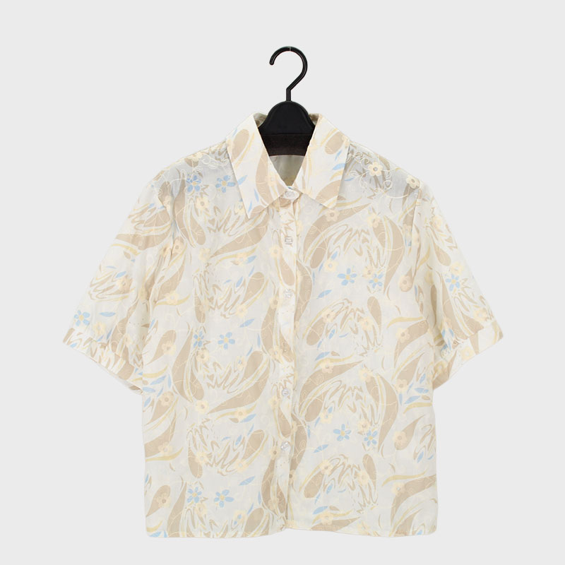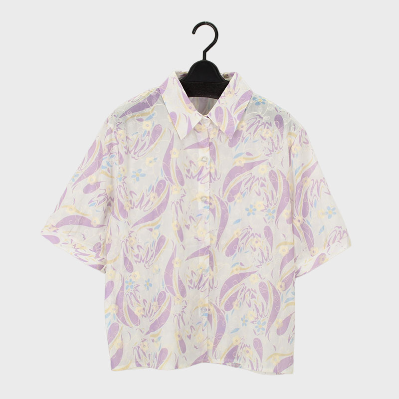 婦人半袖花柄プリントブラウス