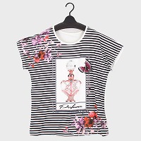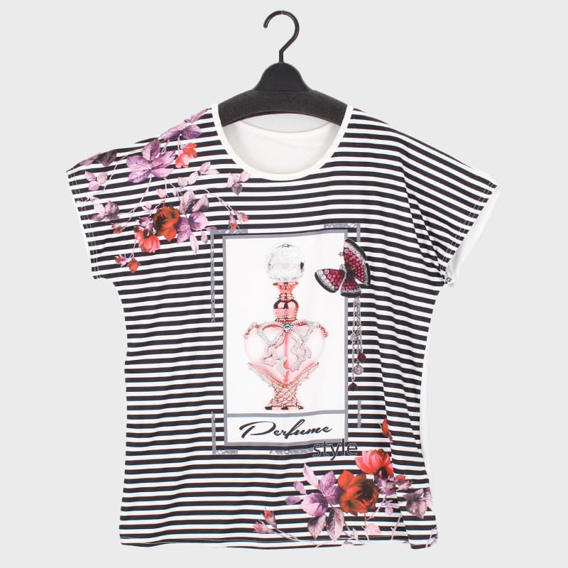 大西衣料(株)が運営する、【公式】卸・仕入れサイト『SELF WEB SHOP』で 婦人キラキラTシャツ(香水瓶) をお仕入れ!