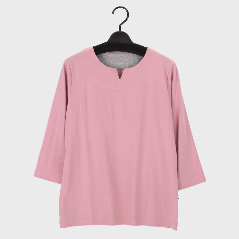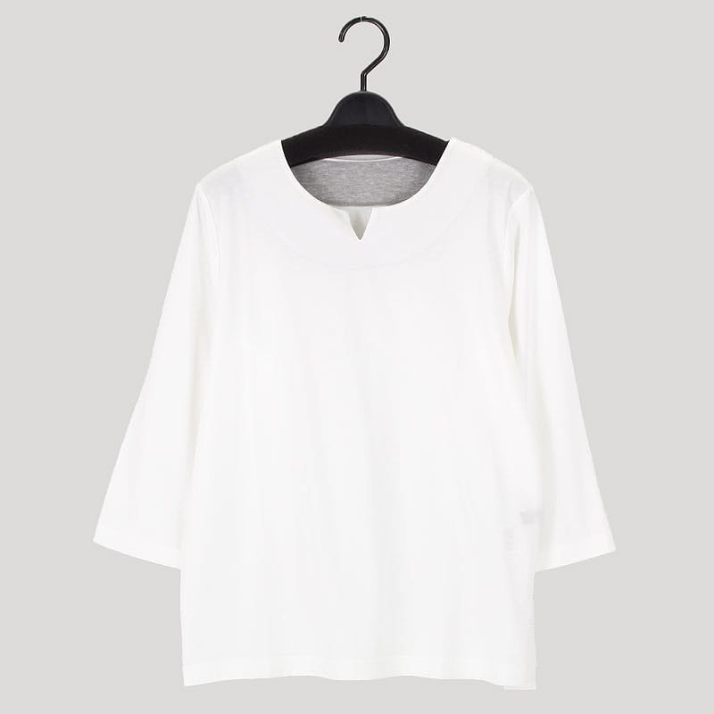 婦人日本製7分袖無地デザインカットソー