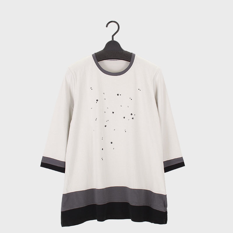 婦人日本製7分袖プリントデザインチュニック