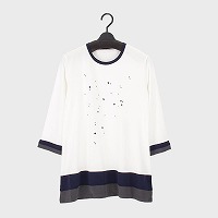 大西衣料(株)が運営する、【公式】卸・仕入れサイト『SELF WEB SHOP』で 婦人日本製7分袖プリントデザインチュニック をお仕入れ!