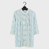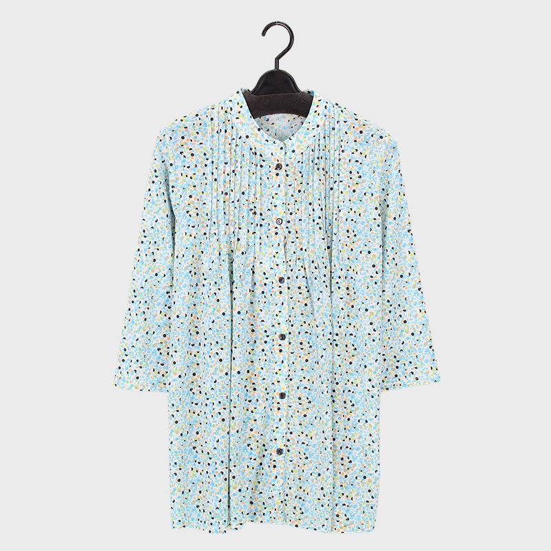 婦人7分袖プリント全開ピンタックチュニック