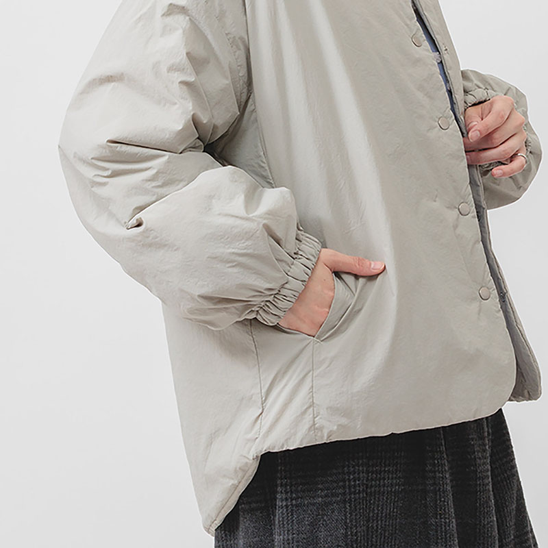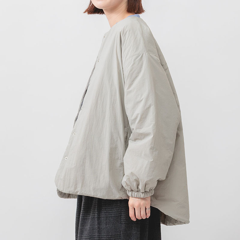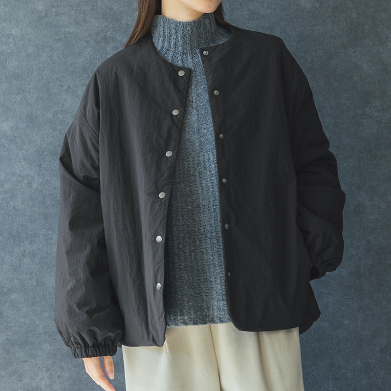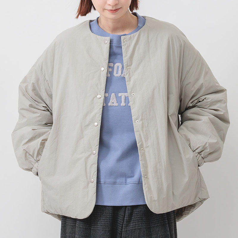 婦人『m.m.o.』軽量中綿入りノーカラーブルゾン