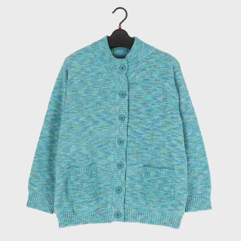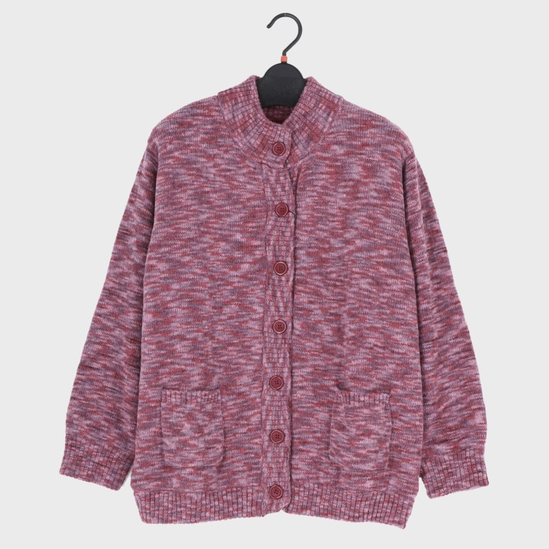 婦人大寸T段染めポケ付裏ボアカーディガン