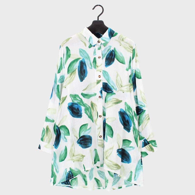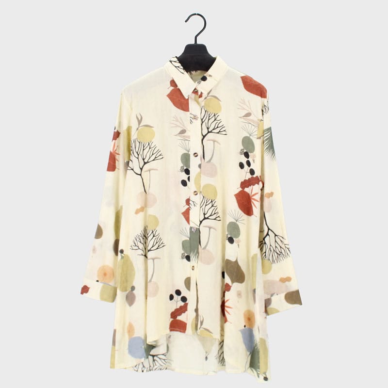 婦人長袖プリントデザインシャツ
