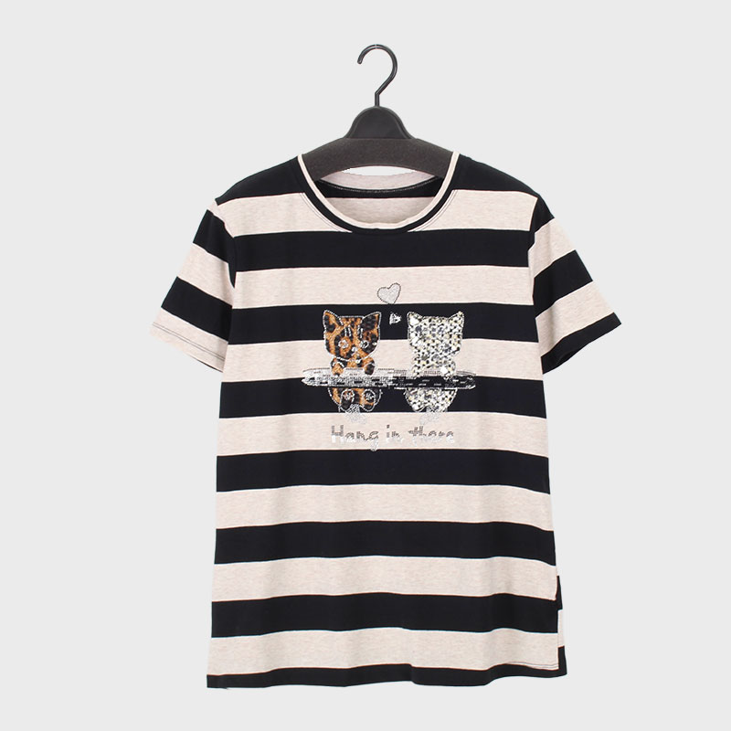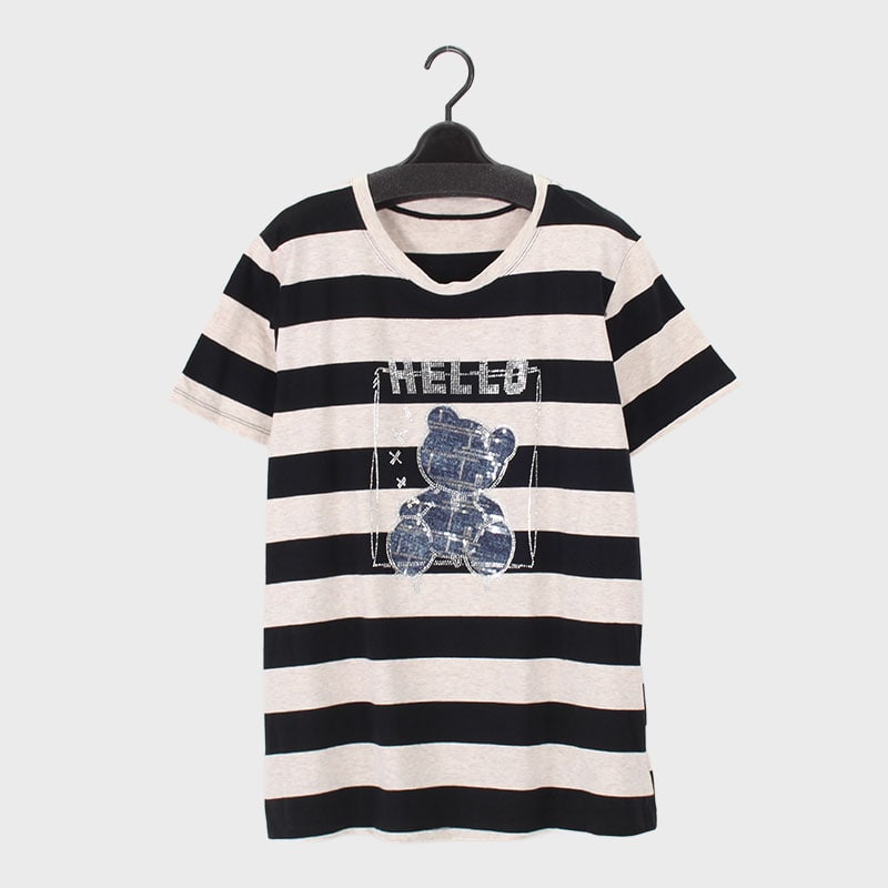 婦人半袖ボーダーキラキラTシャツ