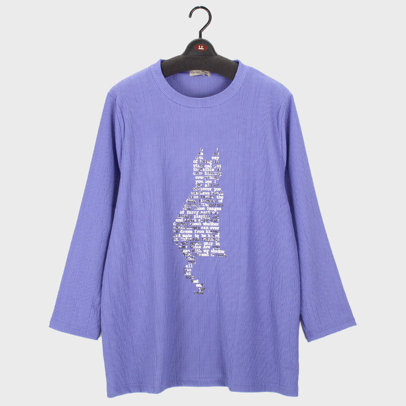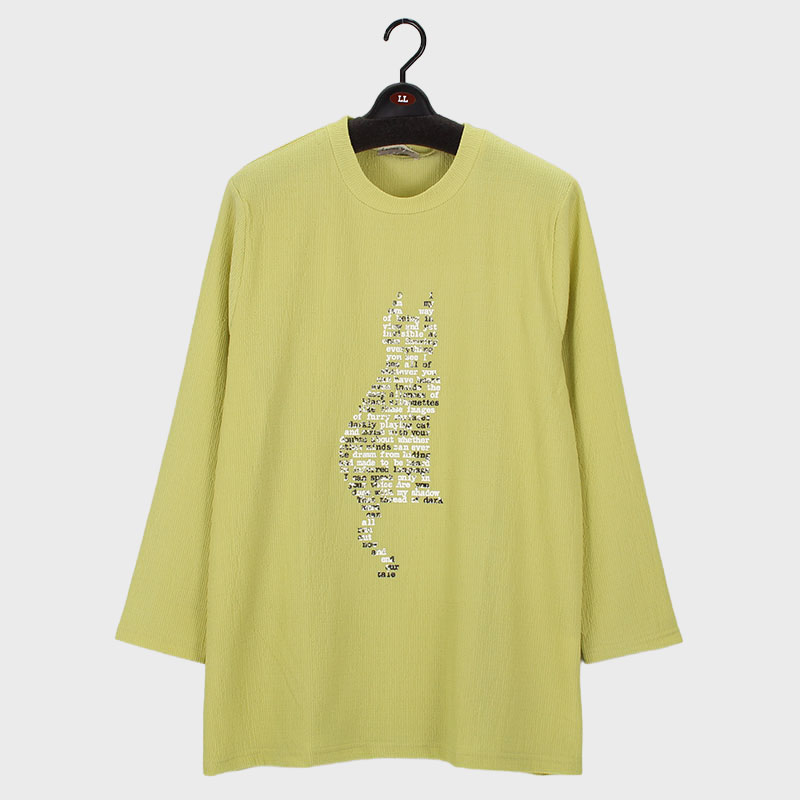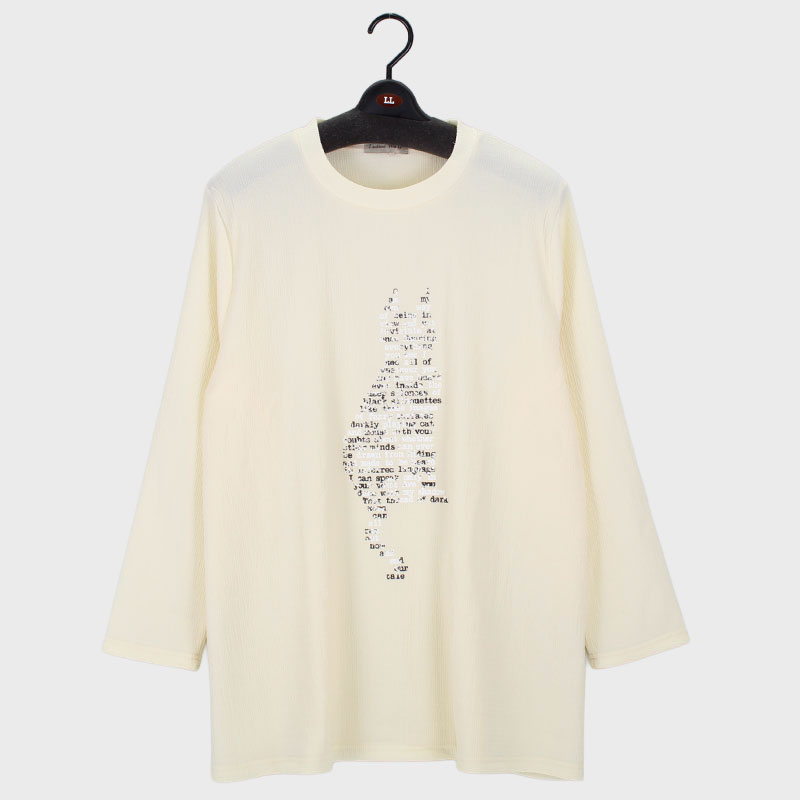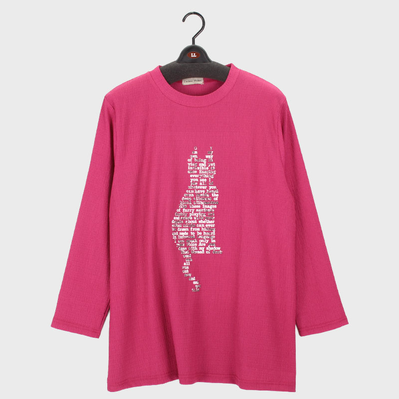 婦人LL寸長袖ネコプリントチュニック