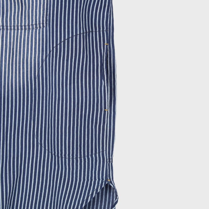 婦人ストライプシアーデニム綿100%チュニック丈ブラウス