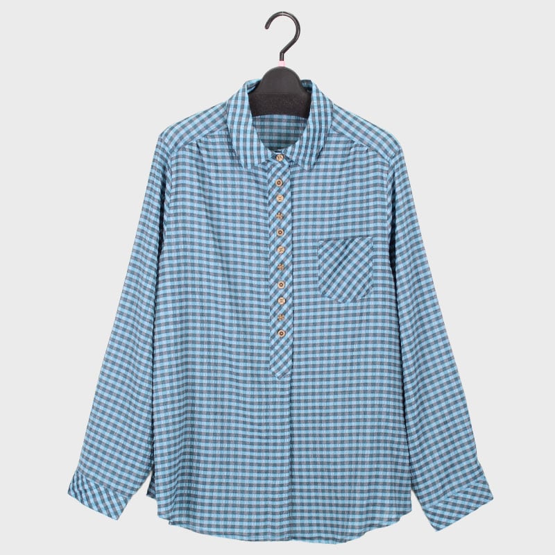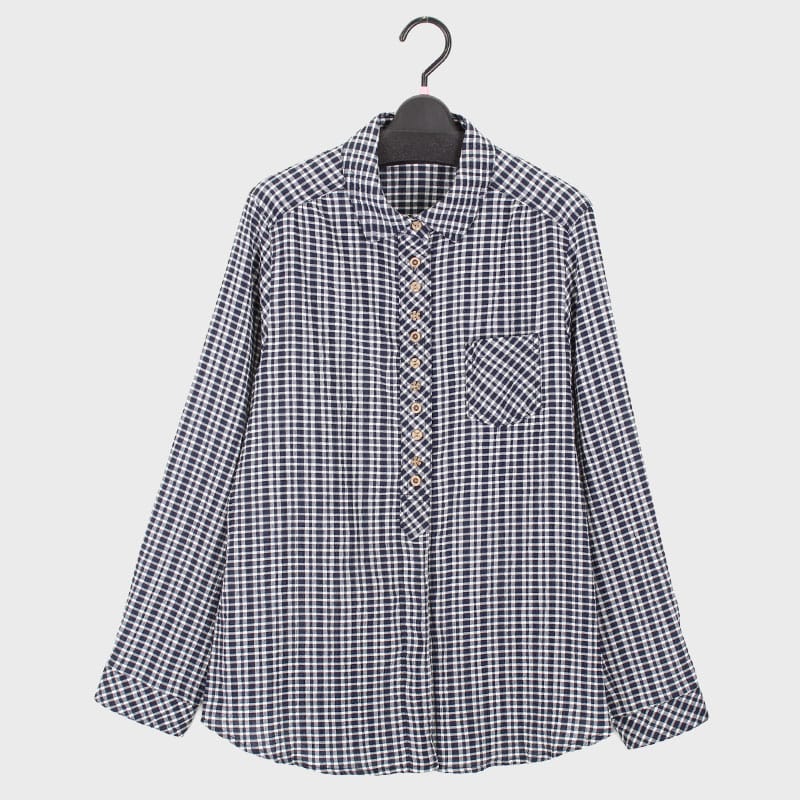 婦人チェック柄多釦ブラウス