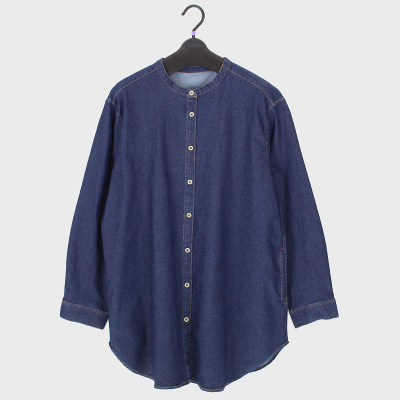 婦人大寸ストレッチデニムバンドカラーチュニック(LL・3L)