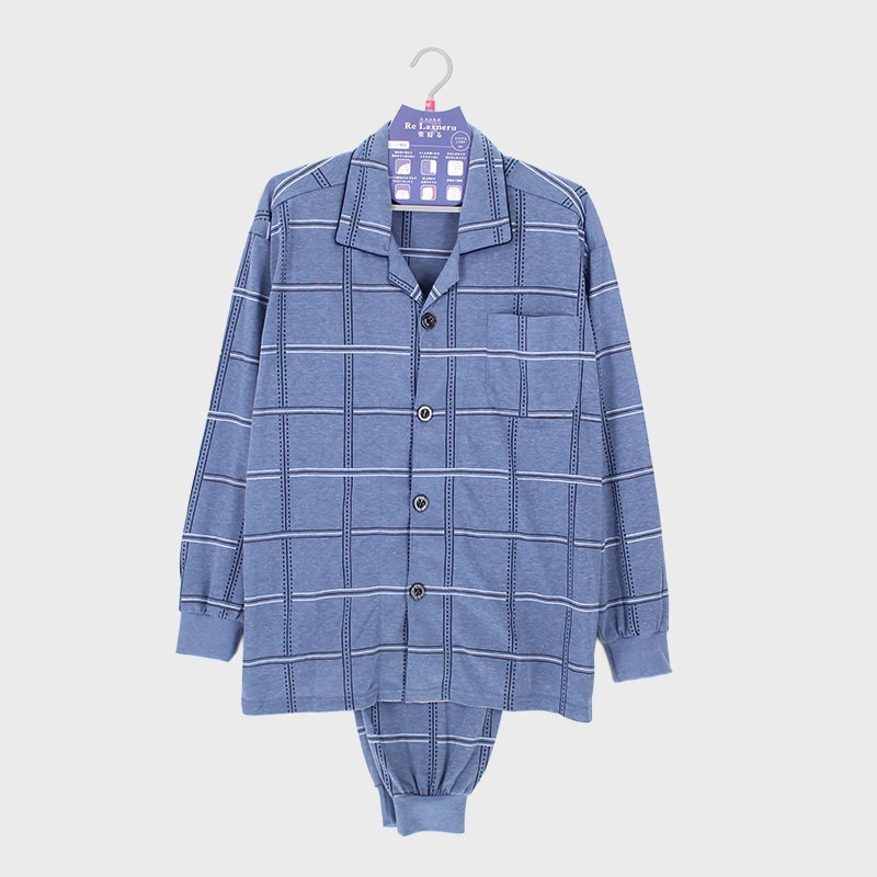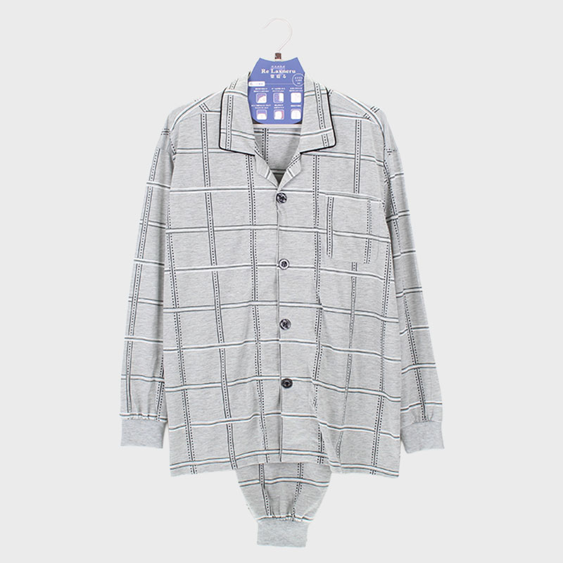 紳士天竺テーラー長袖パジャマ(格子柄)