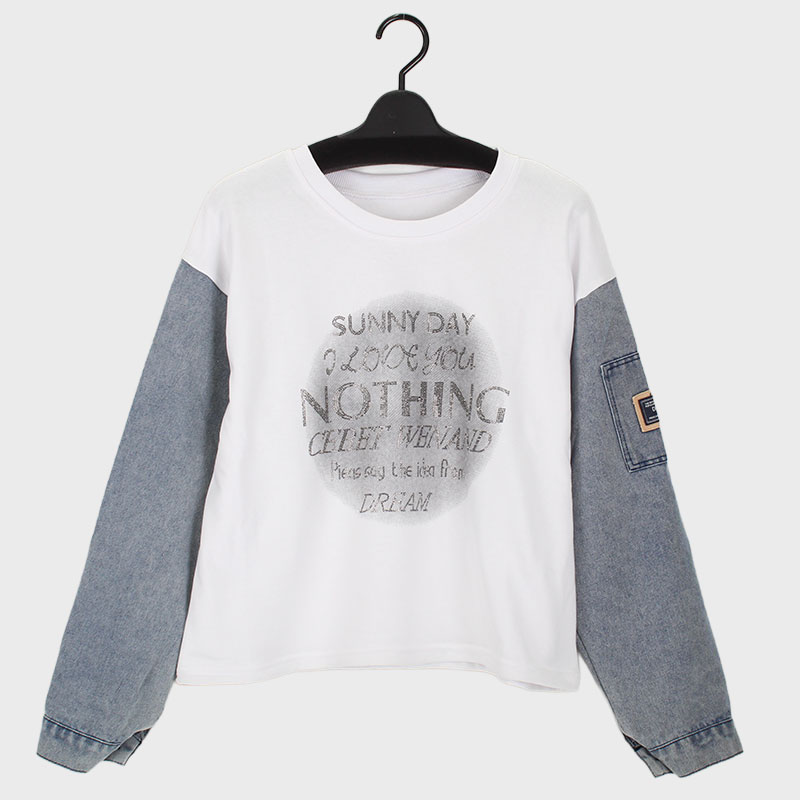 婦人デニム使いデザイントレーナー(ロゴ)