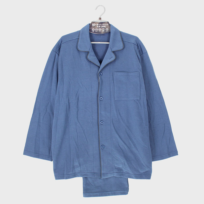 紳士『MEN de NEL』肌側綿100%ピケキルト前開きパジャマ