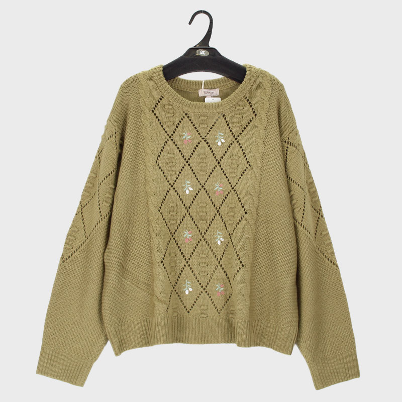 大西衣料(株)が運営する、【公式】卸・仕入れサイト『SELF WEB SHOP』で 婦人大寸丸首セーター(刺しゅう入り) をお仕入れ!