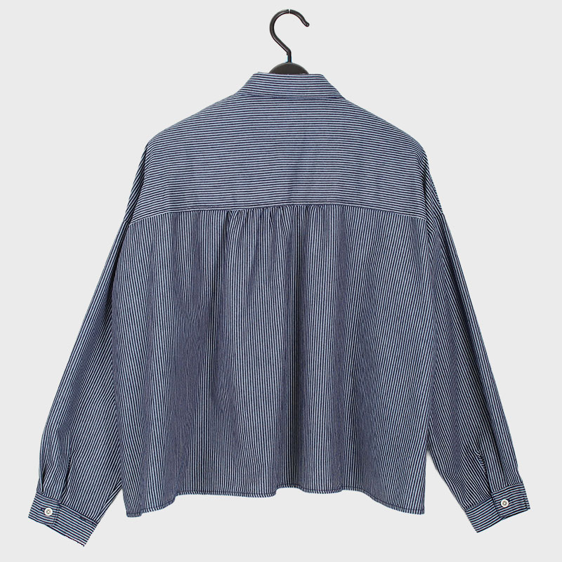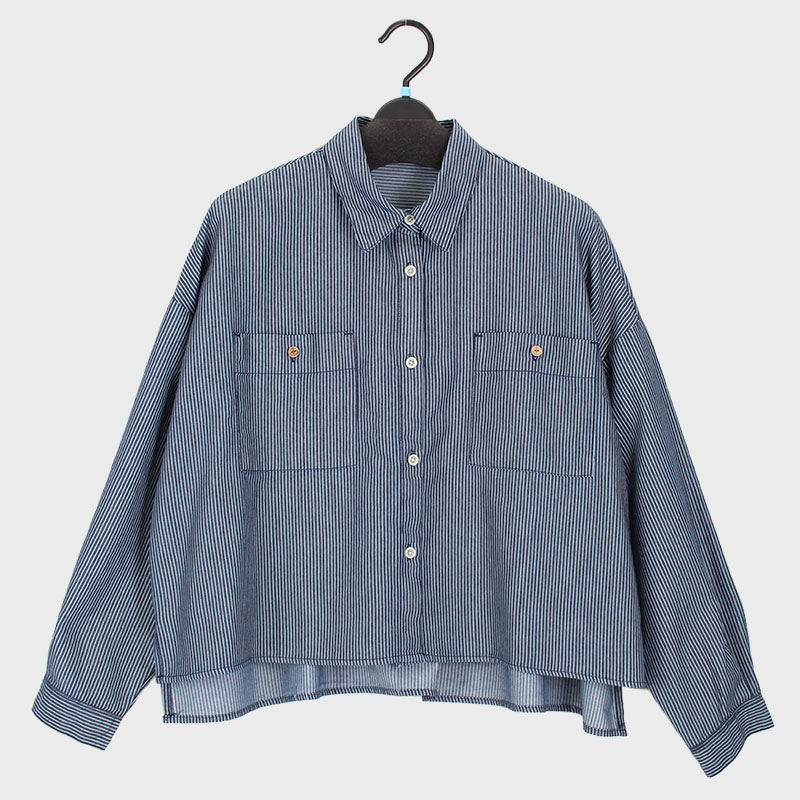 婦人ヒッコリーデニムWポケットショート丈シャツ