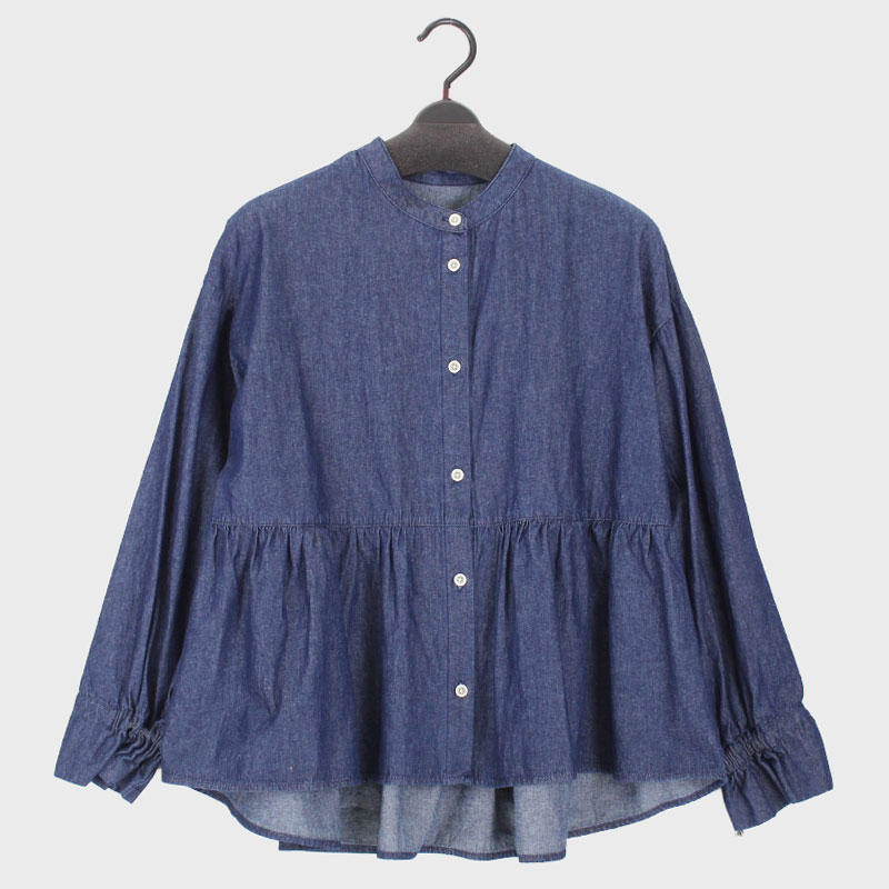 大西衣料(株)が運営する、【公式】卸・仕入れサイト『SELF WEB SHOP』で 婦人ライトオンスデニム衿無しギャザー切り替えブラウス をお仕入れ!