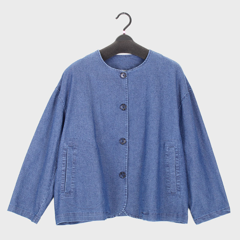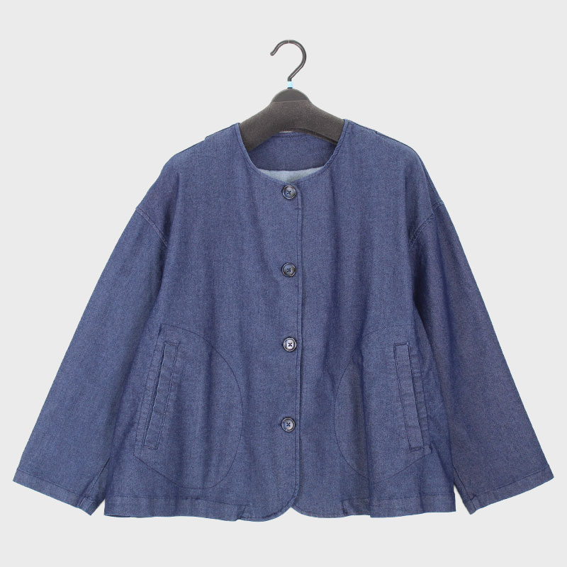大西衣料(株)が運営する、【公式】卸・仕入れサイト『SELF WEB SHOP』で 婦人ストレッチデニムノーカラージャケット をお仕入れ!