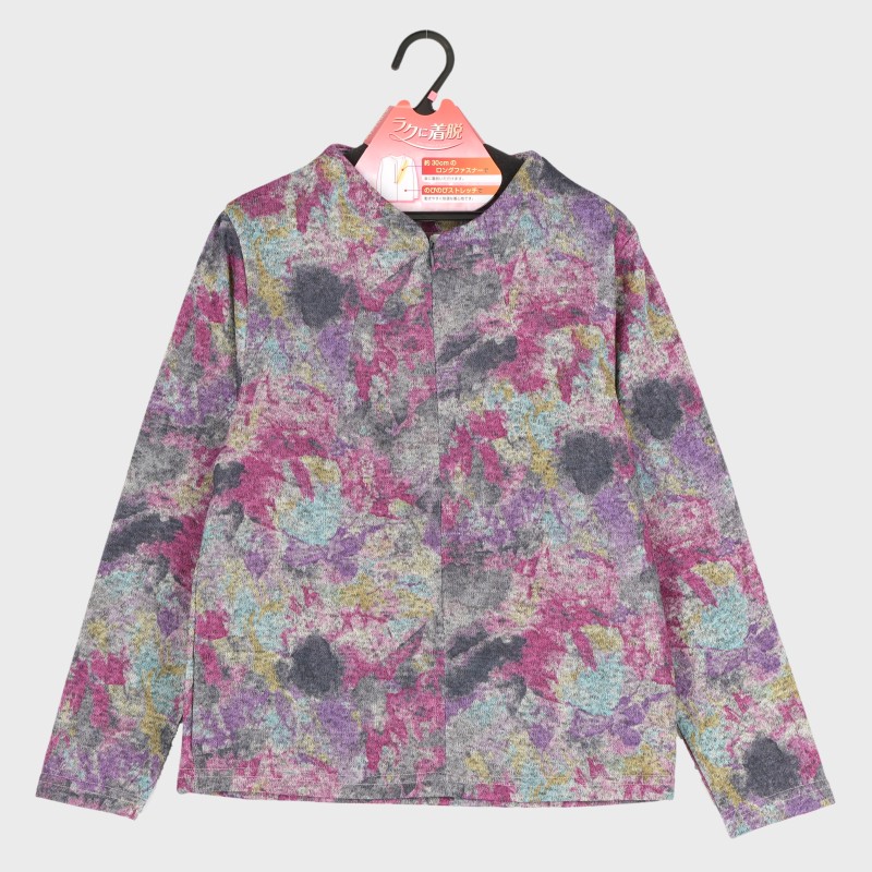 婦人『ラクに着脱』ファスナー付き花柄カットソー