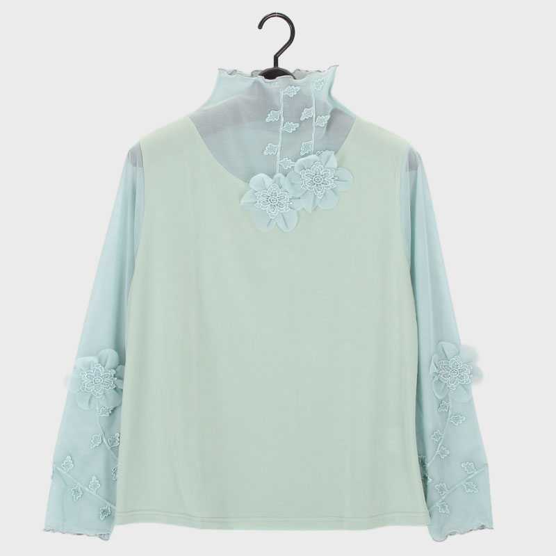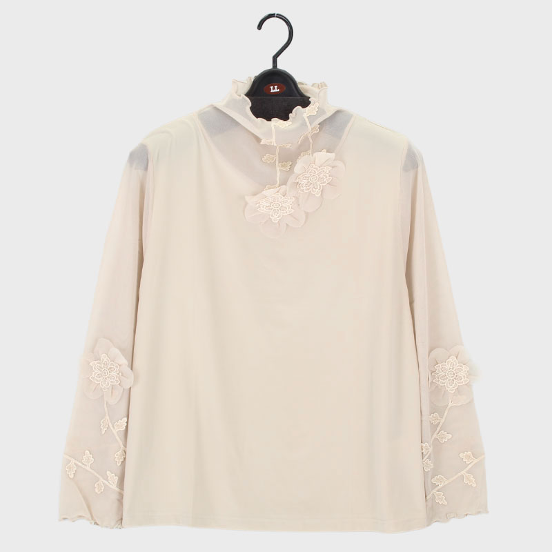 婦人LLサイズ長袖パワーネットデザインカットソー
