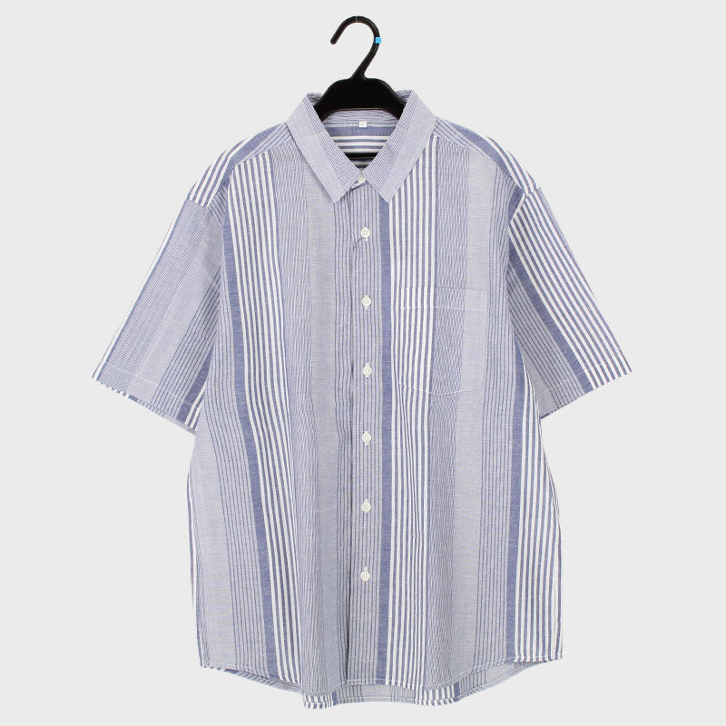 紳士半袖カボックストライプ柄シャツ