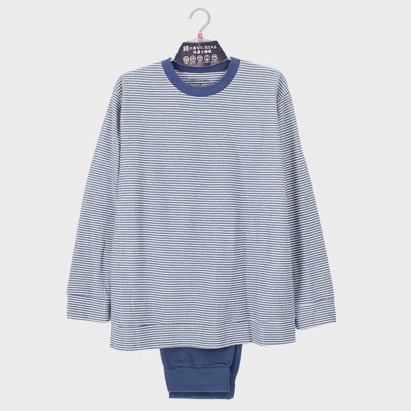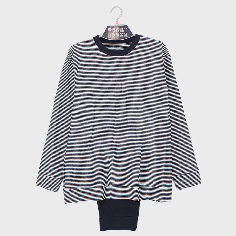 紳士『MEN de NEL』肌側綿100%ピケキルトTスーツパジャマ(ボーダー)