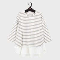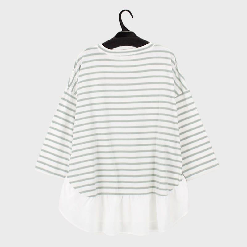 婦人7分袖裾布帛切替ボーダープルオーバー