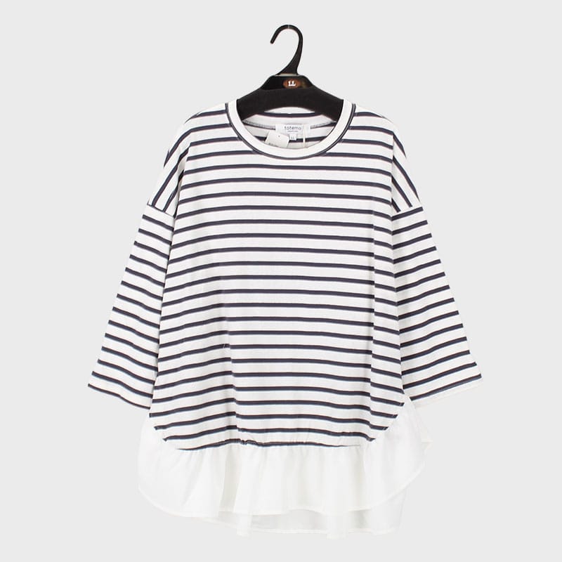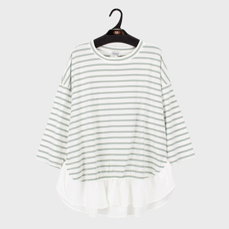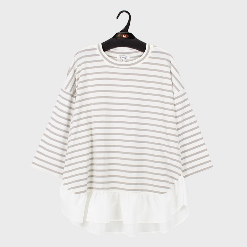 大西衣料(株)が運営する、【公式】卸・仕入れサイト『SELF WEB SHOP』で 婦人7分袖裾布帛切替ボーダープルオーバー をお仕入れ!