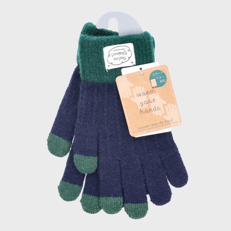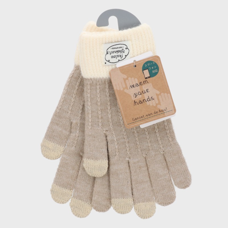 婦人手袋『スマホ対応 ストライプ編み柄』