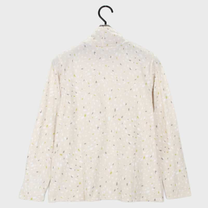 婦人日本製長袖ボトルネックプリントカットソー