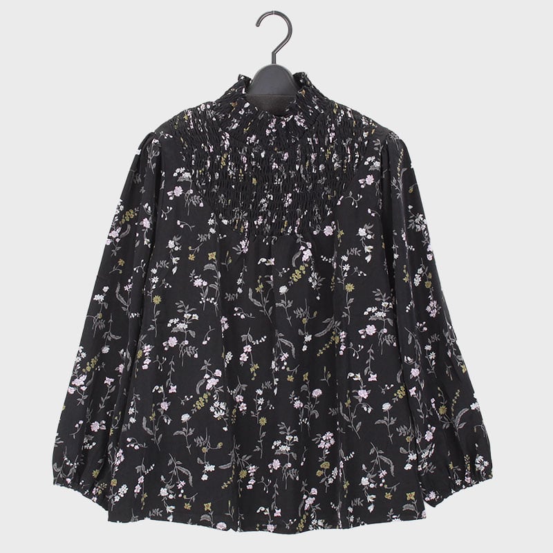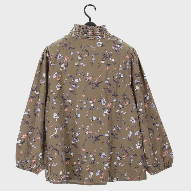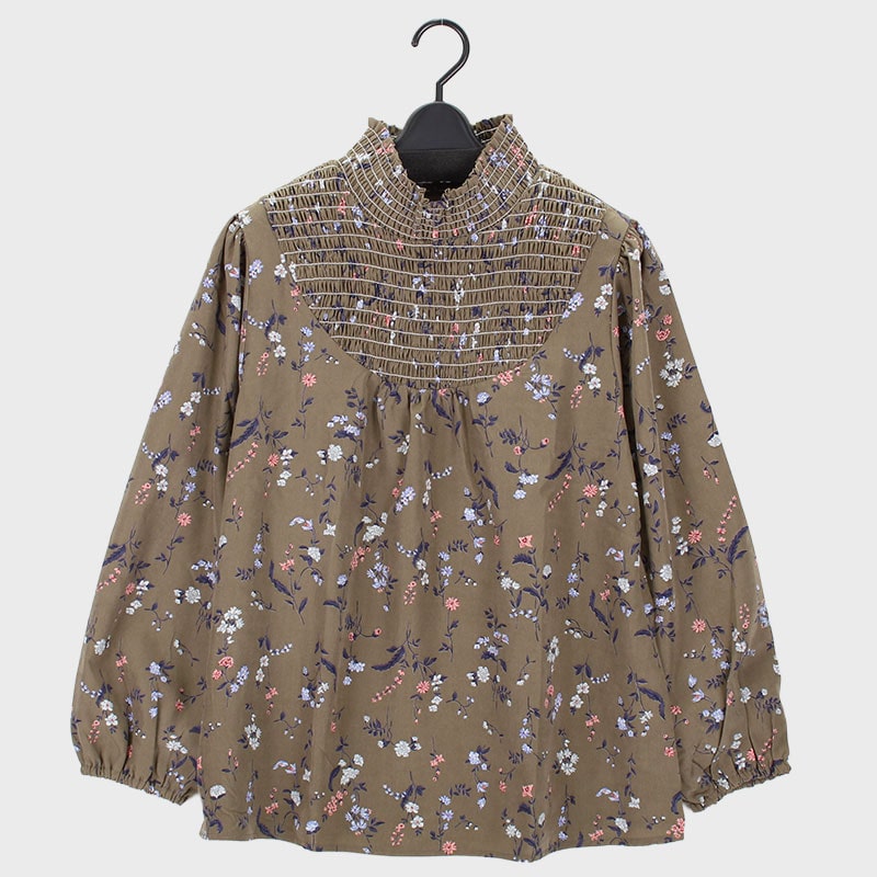 婦人長袖小花プリントシャーリングブラウス