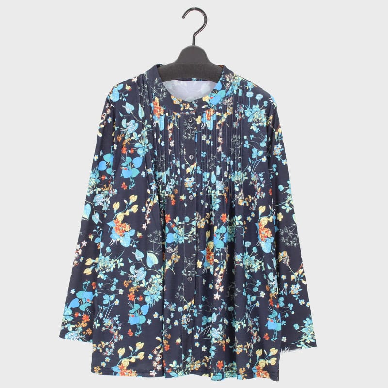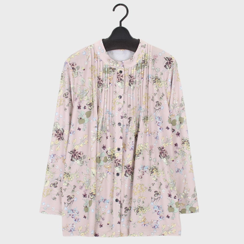 婦人長袖前あきピンタックチュニック