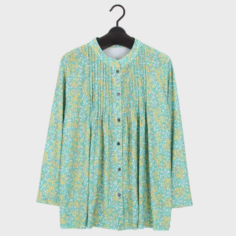 婦人長袖前あきピンタックチュニック