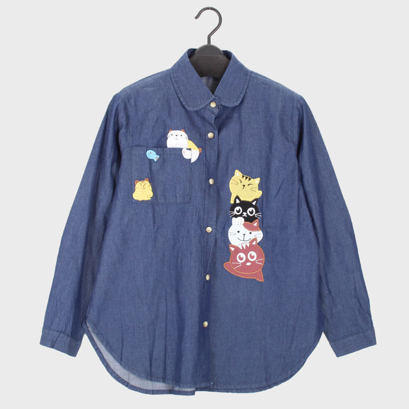 大西衣料(株)が運営する、【公式】卸・仕入れサイト『SELF WEB SHOP』で 婦人デニムシャツ(ネコアップリケ) をお仕入れ!