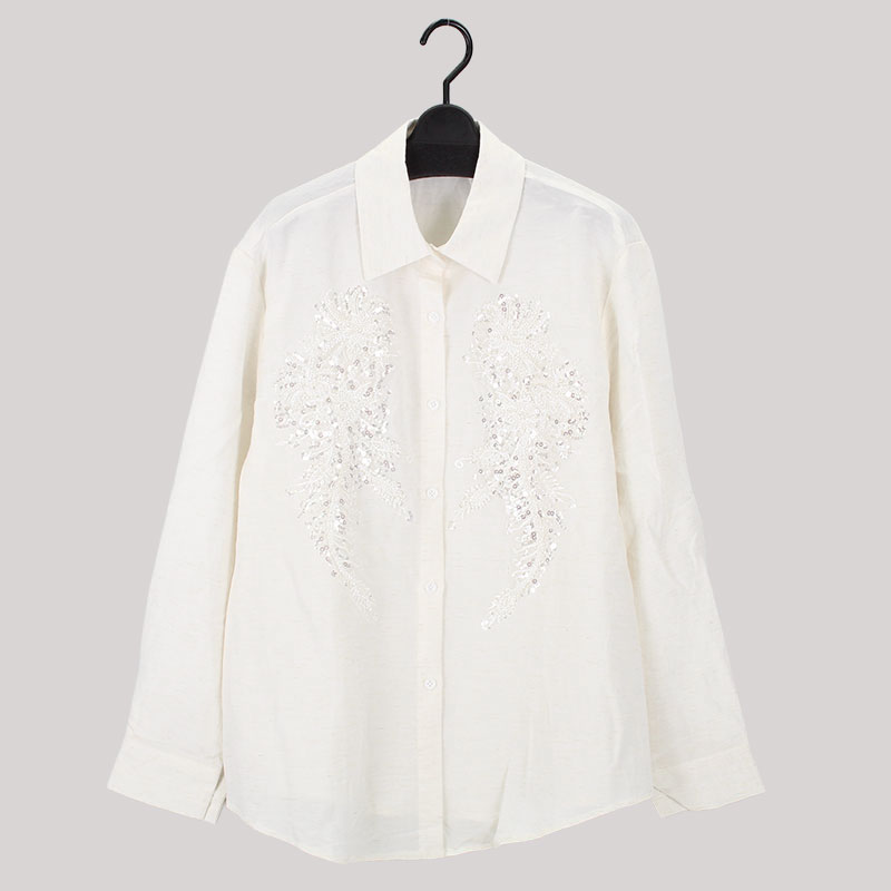 大西衣料(株)が運営する、【公式】卸・仕入れサイト『SELF WEB SHOP』で 婦人長袖無地ブラウススパンコール刺しゅう をお仕入れ!