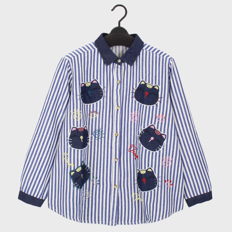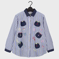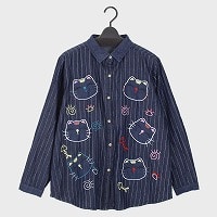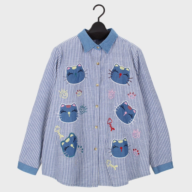 婦人デニムストライプシャツ(ネコアップリケ)
