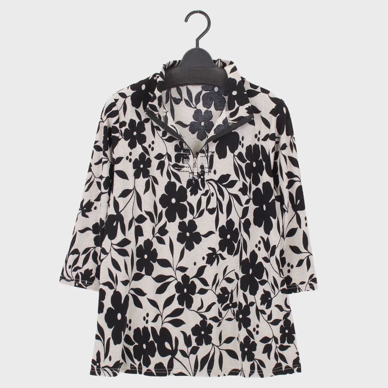 婦人7分袖プリントHNジップアップカットソー