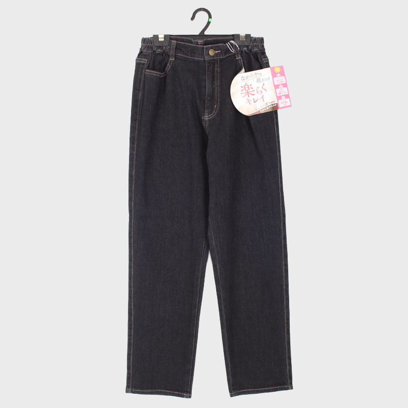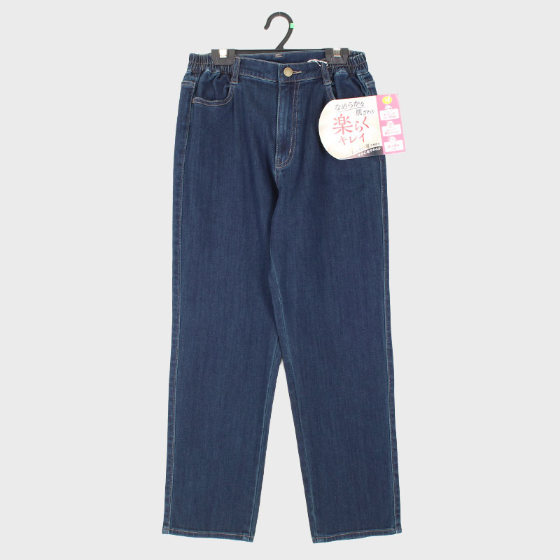婦人レーヨン混脇ゴムスリムデニムパンツ