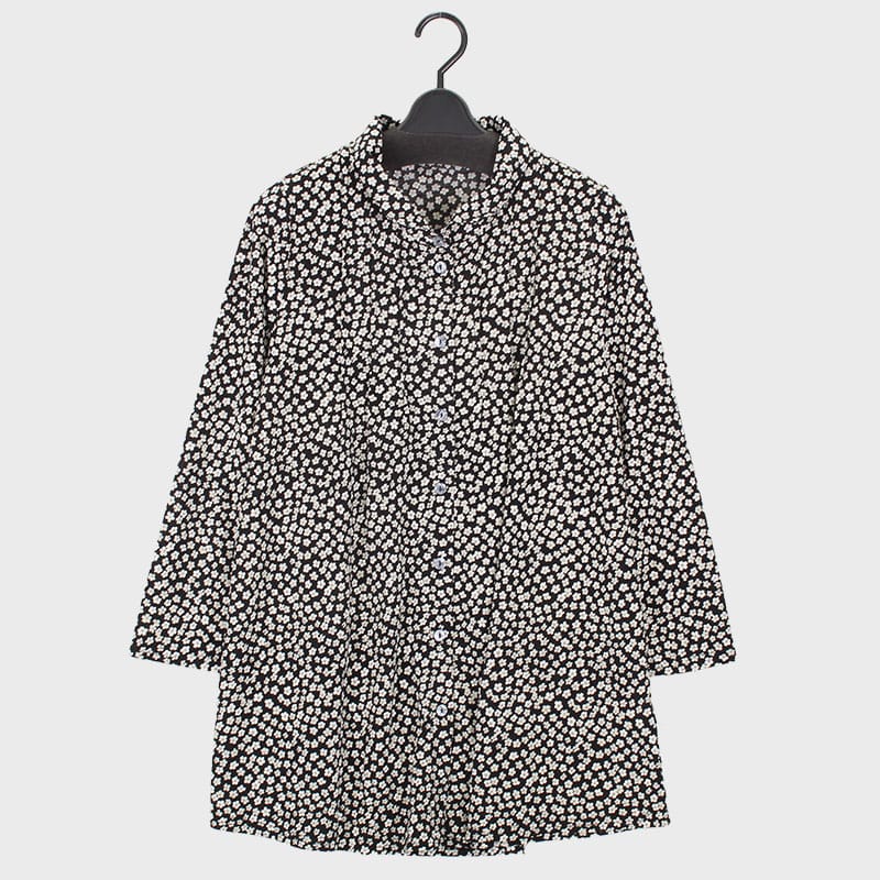 大西衣料(株)が運営する、【公式】卸・仕入れサイト『SELF WEB SHOP』で 婦人長袖プリント全開襟付きピンタックチュニック をお仕入れ!