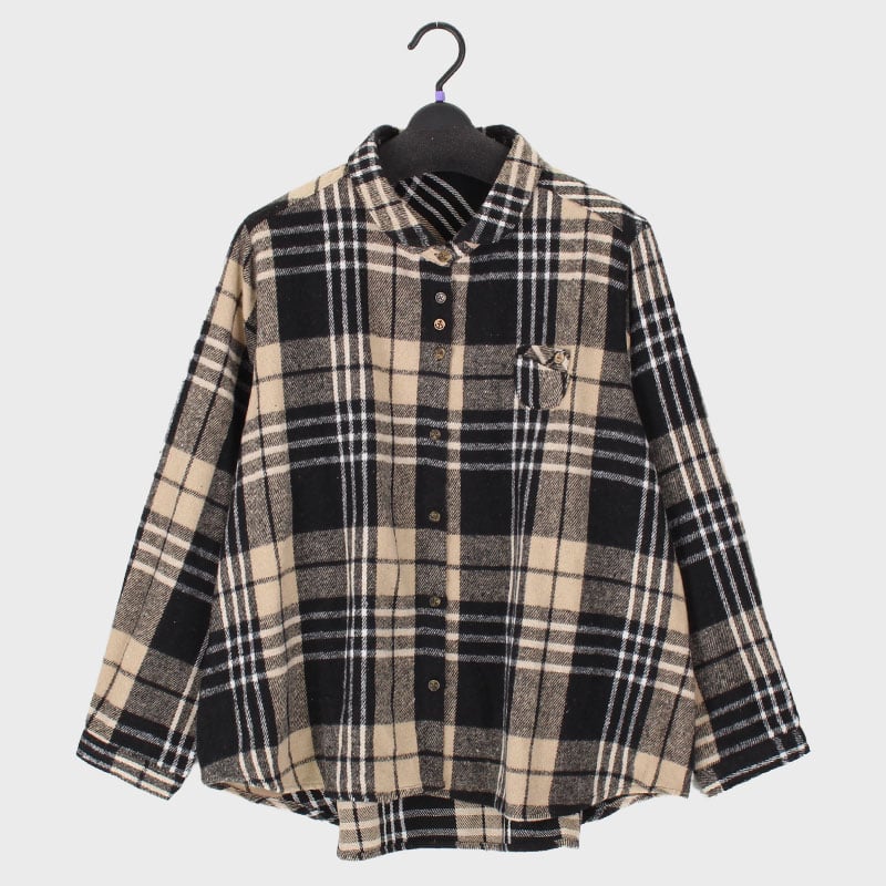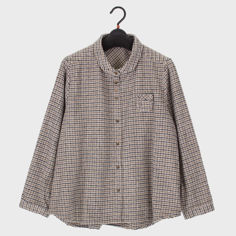 婦人大寸チビ衿紡毛風チェックブラウス(LL・3L)