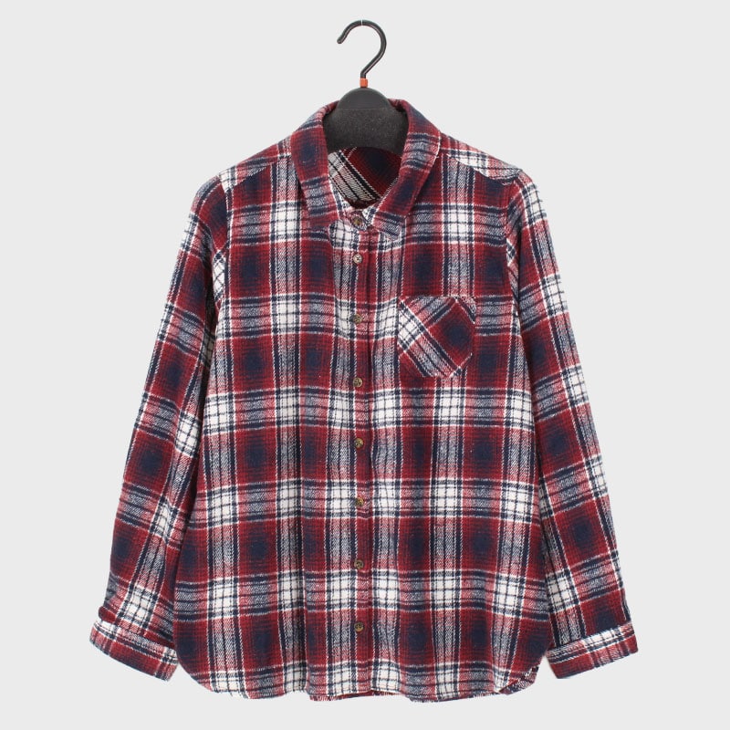 婦人大寸シャツ衿紡毛風チェックブラウス(LL・3L)