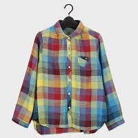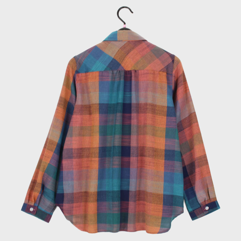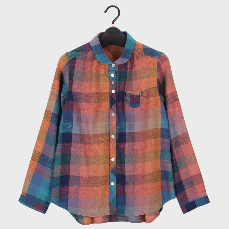 婦人大寸綿100%スラブ格子柄ちび衿ブラウス
