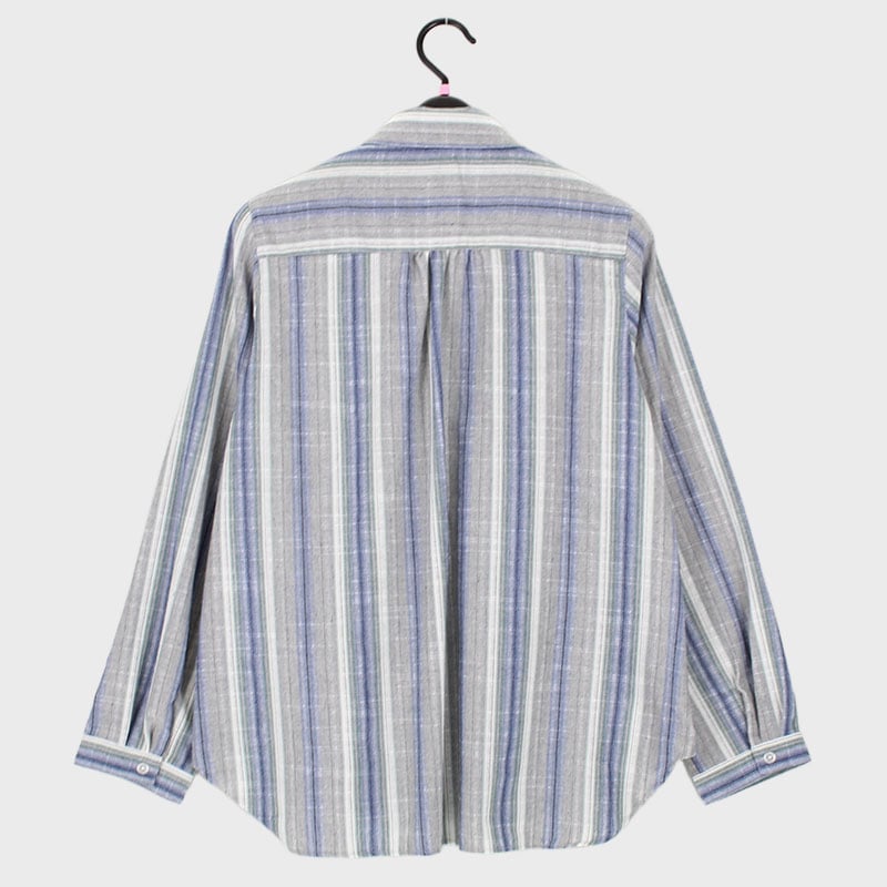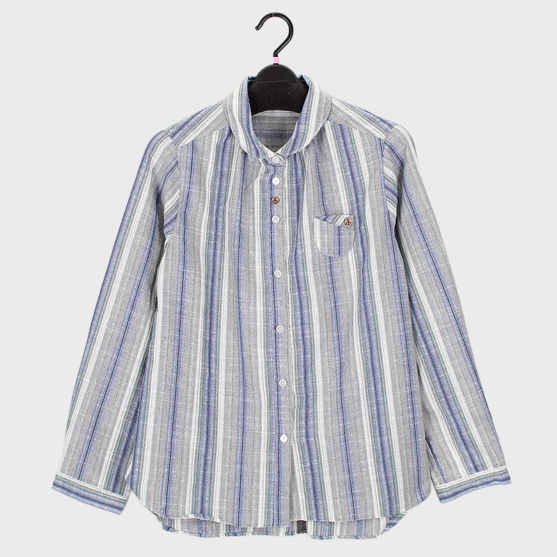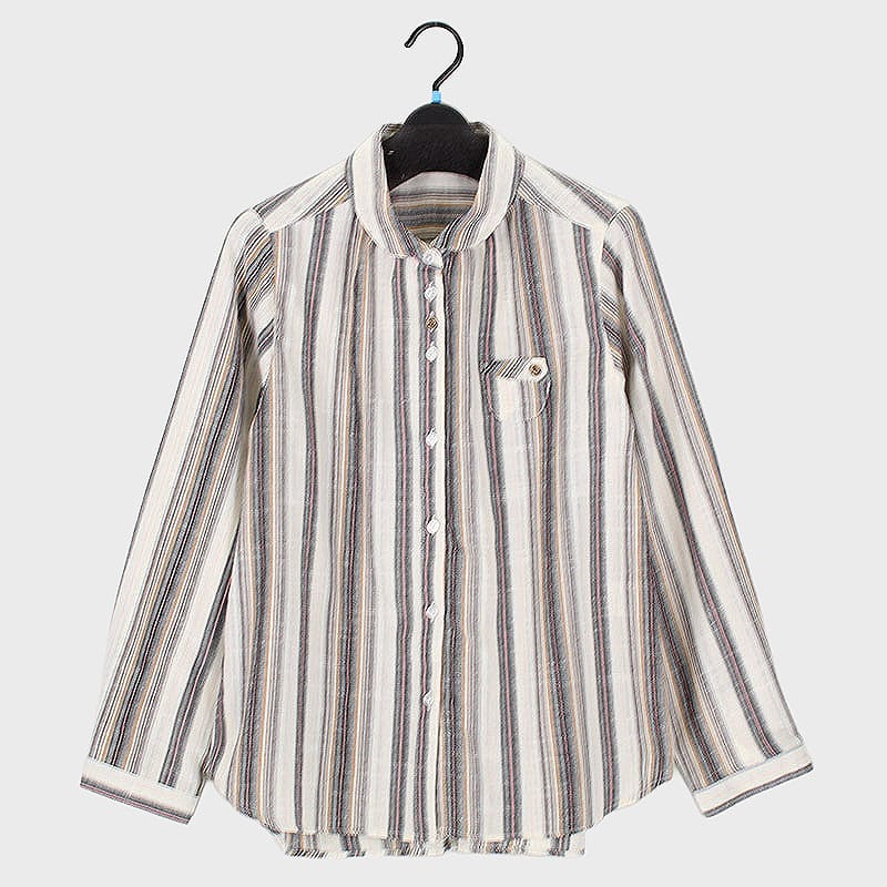 婦人大寸スラブ綿100%ストライプ柄ちび衿ブラウス
