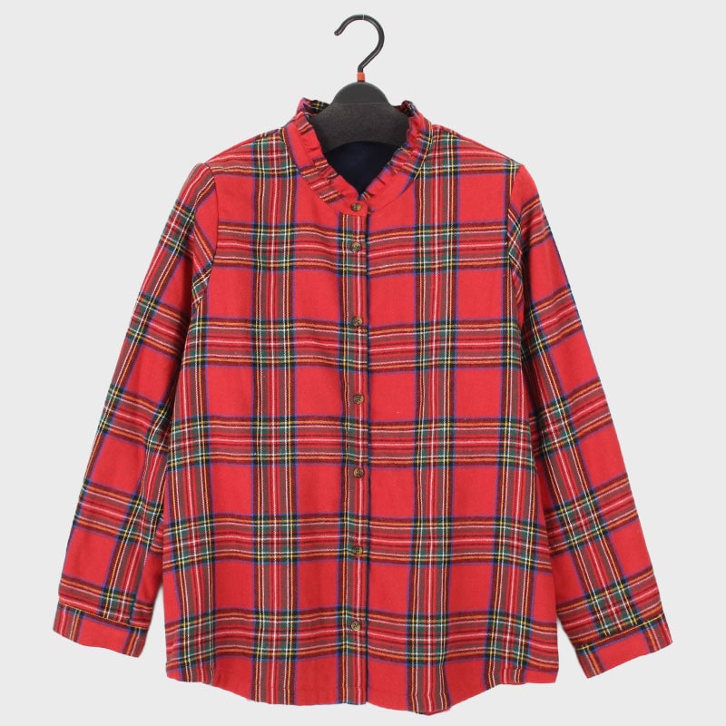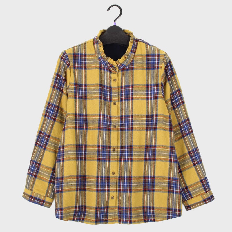婦人大寸裏フリースフリル衿ビエラブラウス