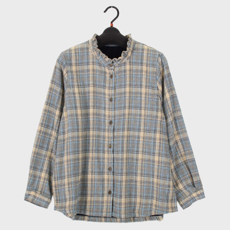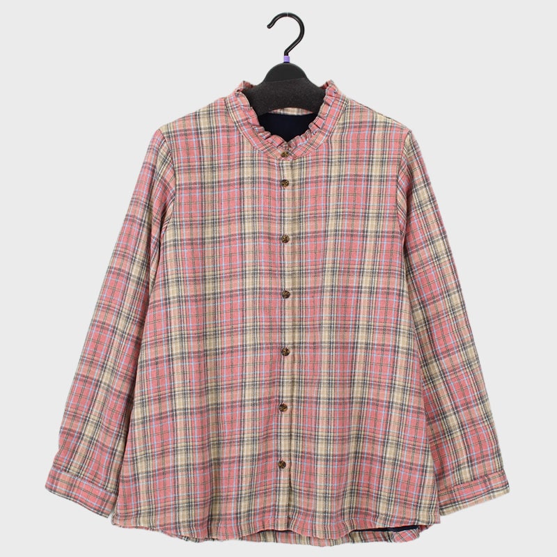 婦人大寸裏フリースフリル衿ビエラブラウス