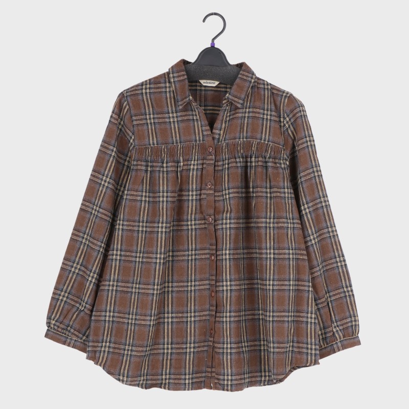 大西衣料(株)が運営する、【公式】卸・仕入れサイト『SELF WEB SHOP』で 婦人胸シャーリングチェック柄シャツ衿ブラウス(LL・3L) をお仕入れ!