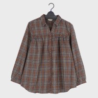 婦人胸シャーリングチェック柄シャツ衿ブラウス(LL・3L)