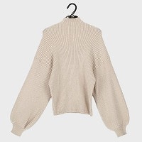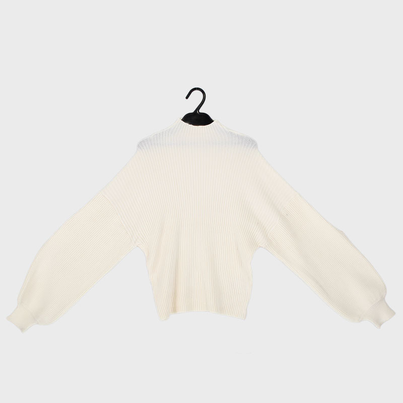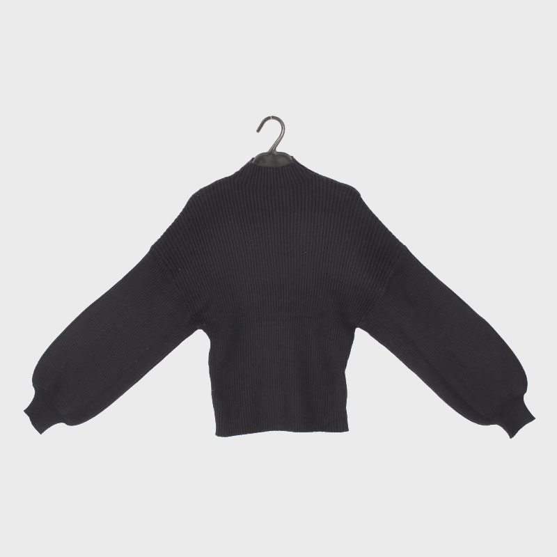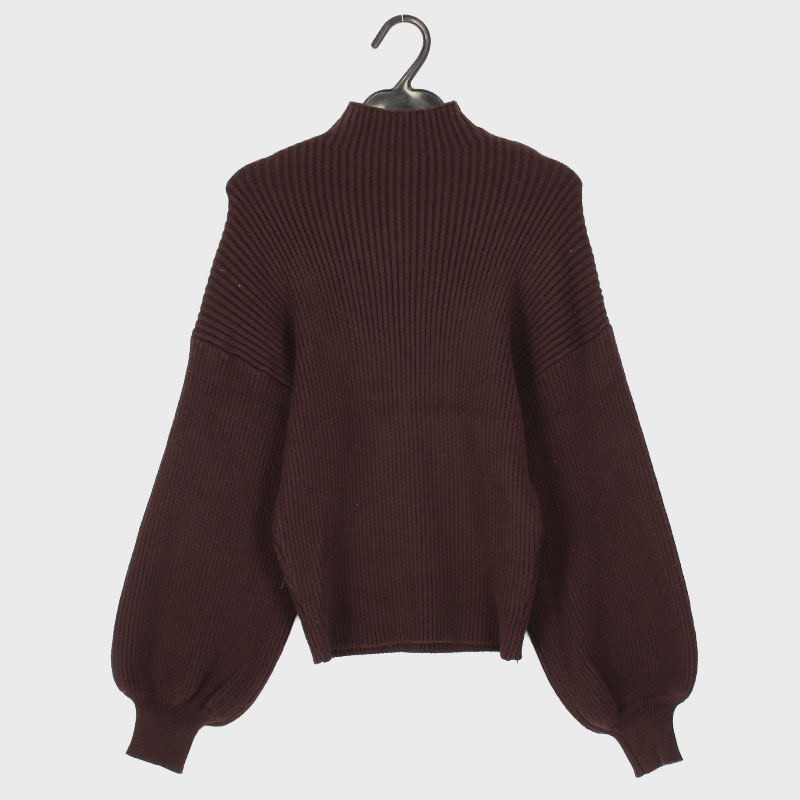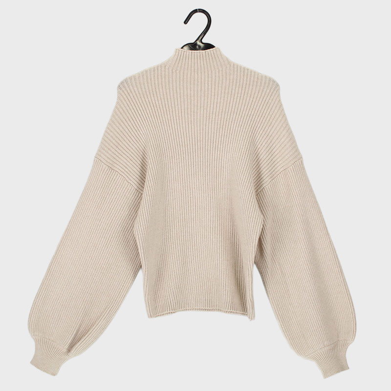 婦人ボトルネックボリュームスリーブリブニットプルオーバー