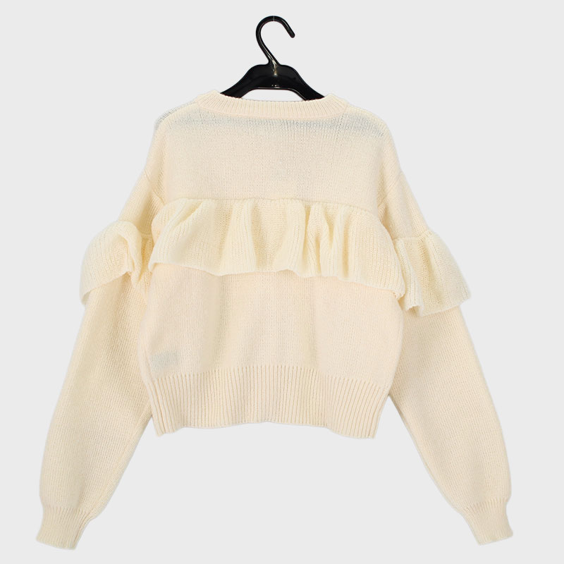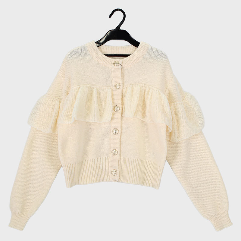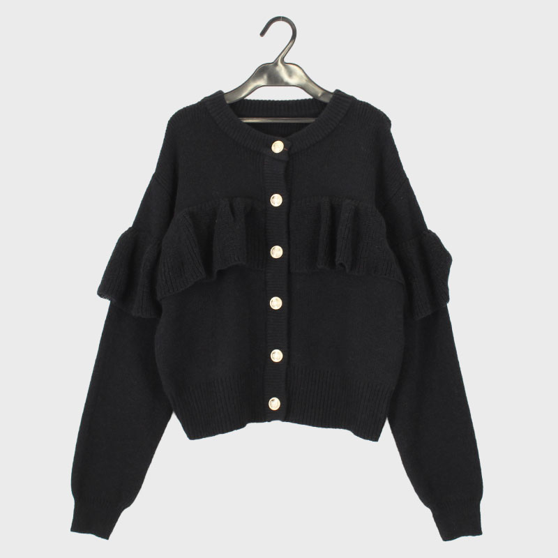 大西衣料(株)が運営する、【公式】卸・仕入れサイト『SELF WEB SHOP』で 婦人フリル金ボタンニットカーディガン をお仕入れ!